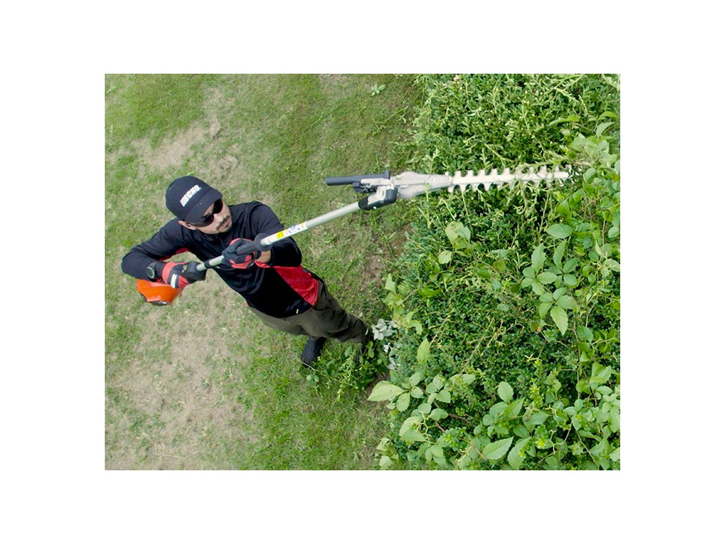 Pro dosažení ideální rovnováhy je motor i baterie umístěny vzadu, což snižuje krouticí síly a zlepšuje ovladatelnost během práce. Přední rukojeť s měkkým gumovým povrchem zvyšuje komfort a jistotu úchopu v jakékoli pracovní poloze. Proměnný plyn a třírychlostní volič s paměťovou funkcí pak umožňují přesné přizpůsobení výkonu, ať už se jedná o prostřih hustého porostu nebo jemné tvarování.