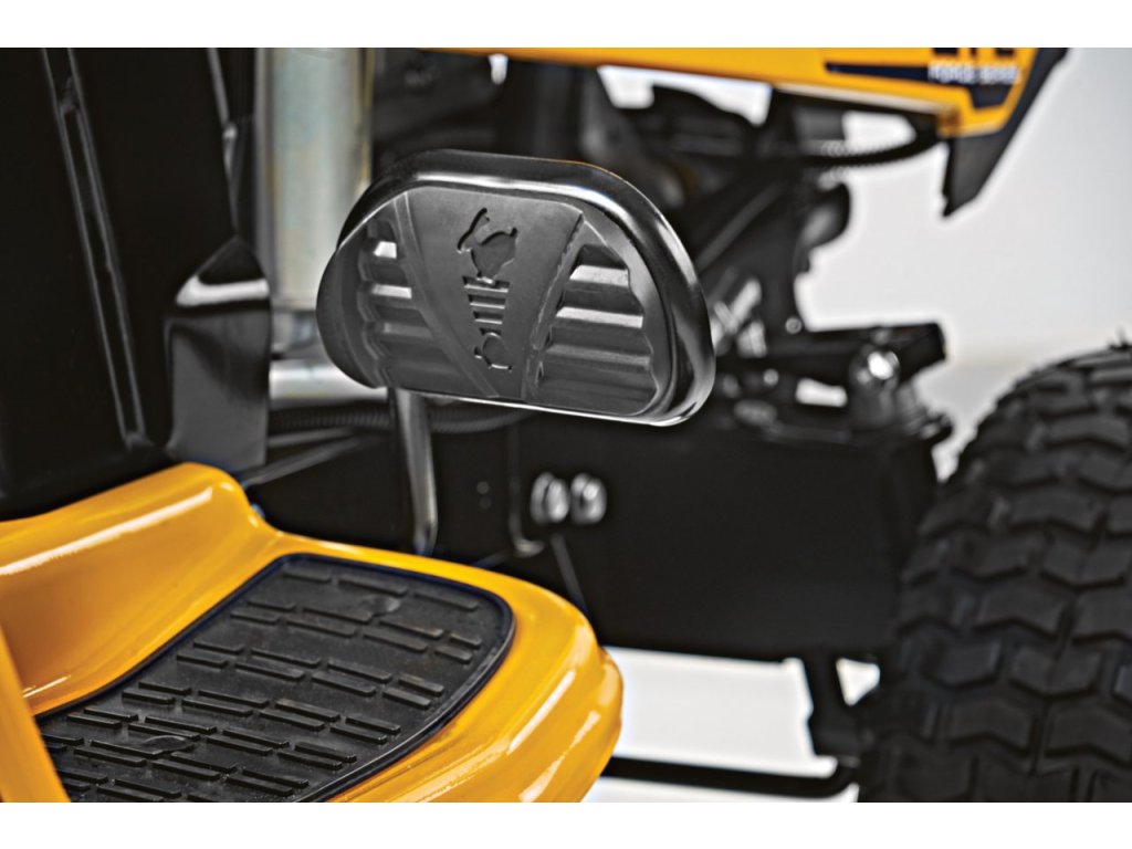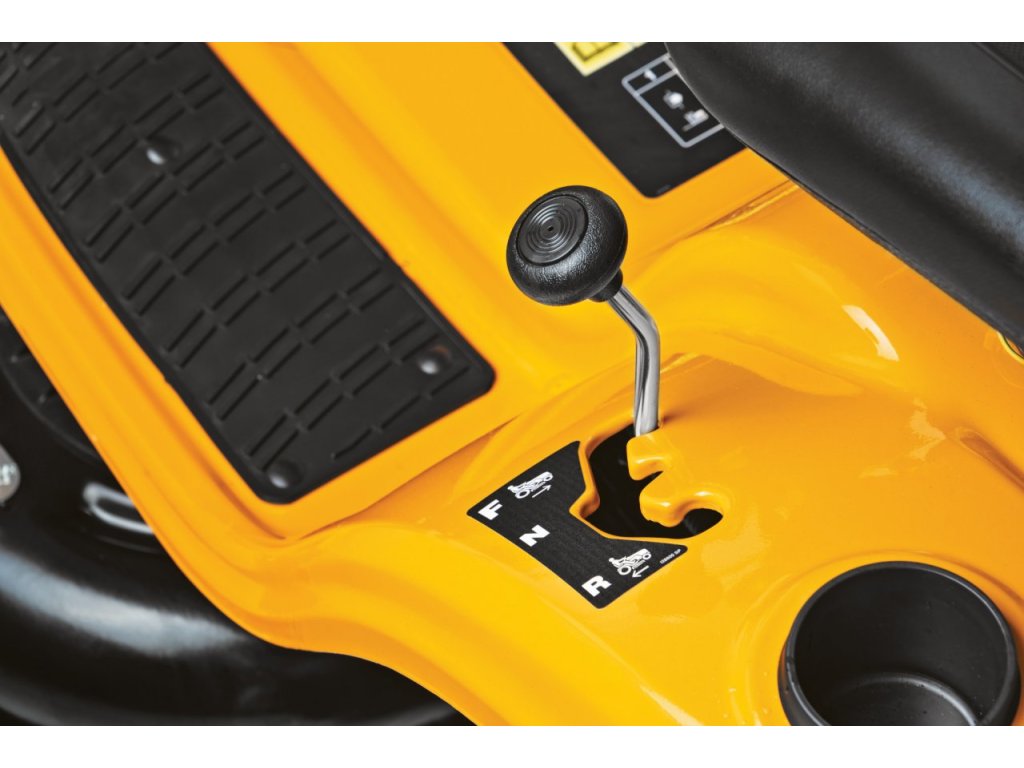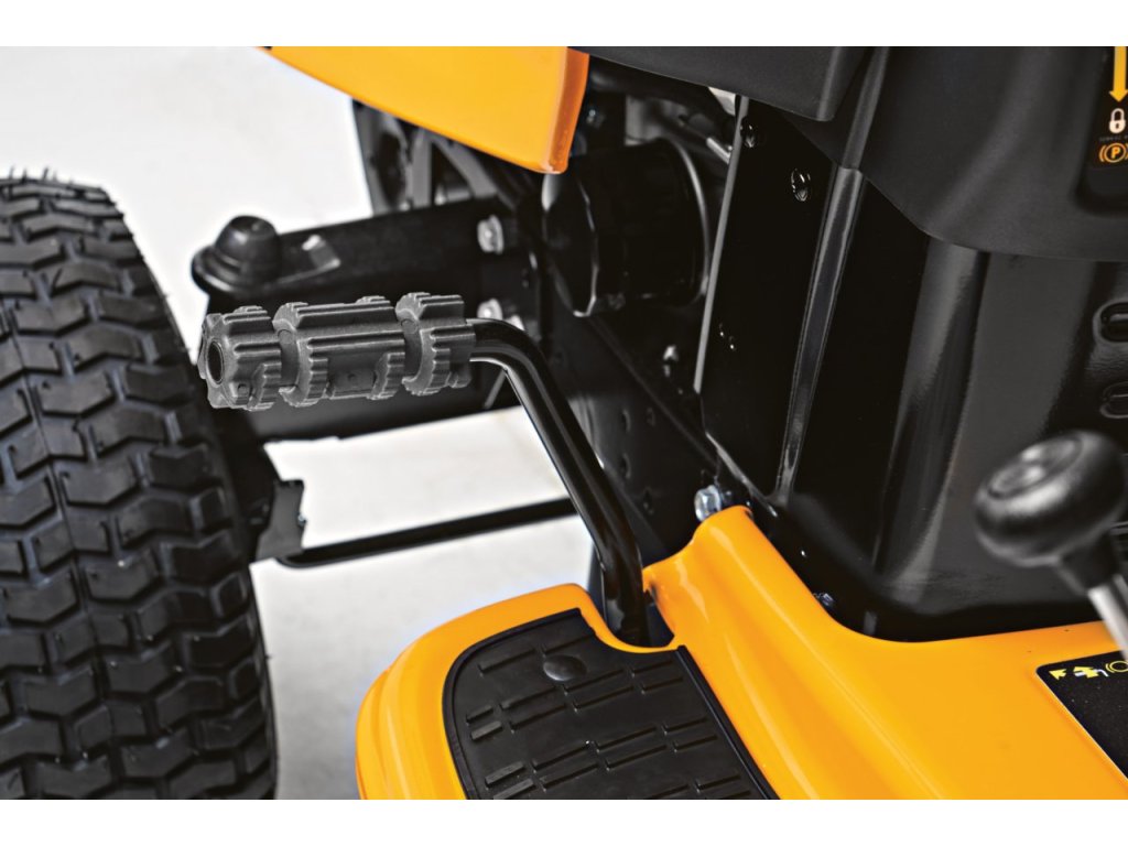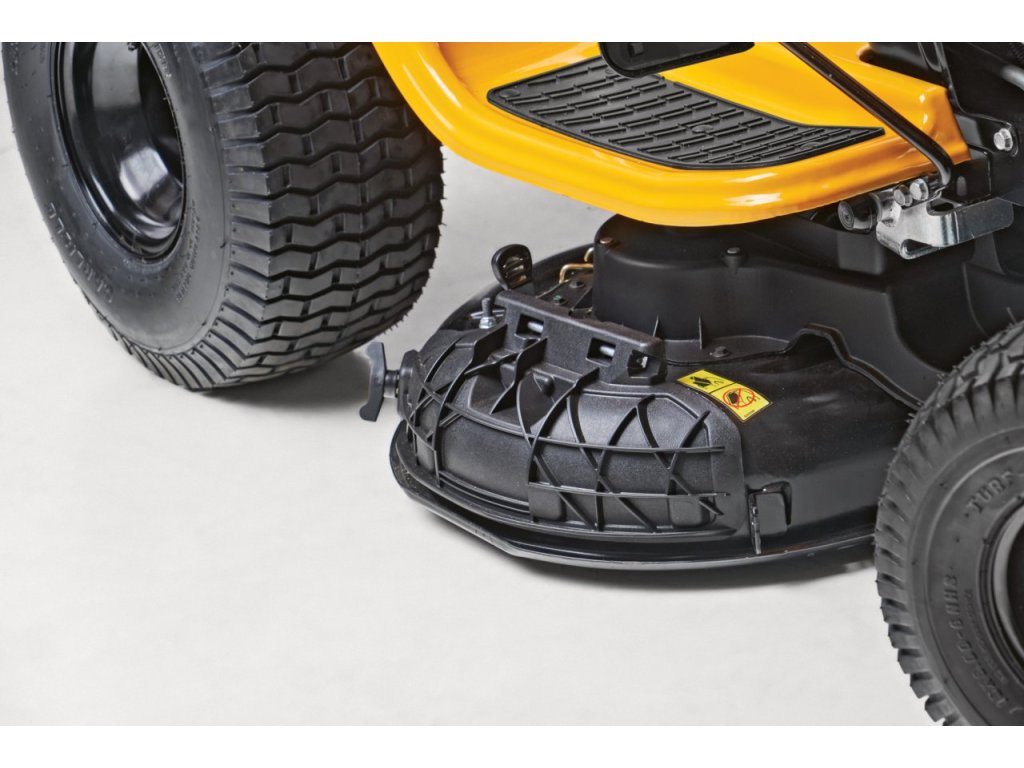 Tlakové mazání motoru, Jednoduchá ovladatelná hydrostatická převodovka s minimálními servisními náklady. Rychlost pojezdu plynu nastavitelná pedálem. Plovoucí žací ústrojí s integrovanou mulčovací záslepkou.