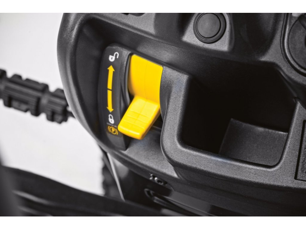 Velmi malý poloměr otáčení 46 cm pro perfektní manévrovatelnost se strojem, tímto je vhodný i pro začátečníky. Pohodlné odpružené sedadlo s vysokým opěradlem.