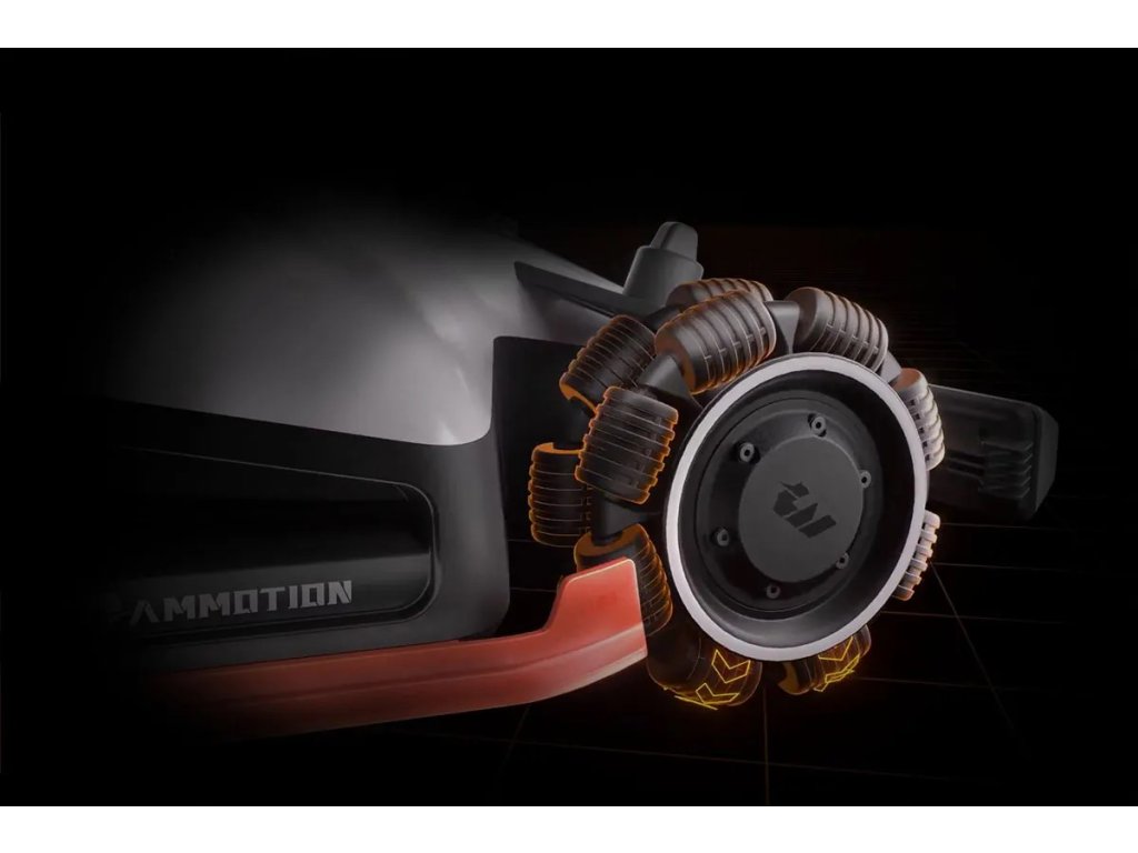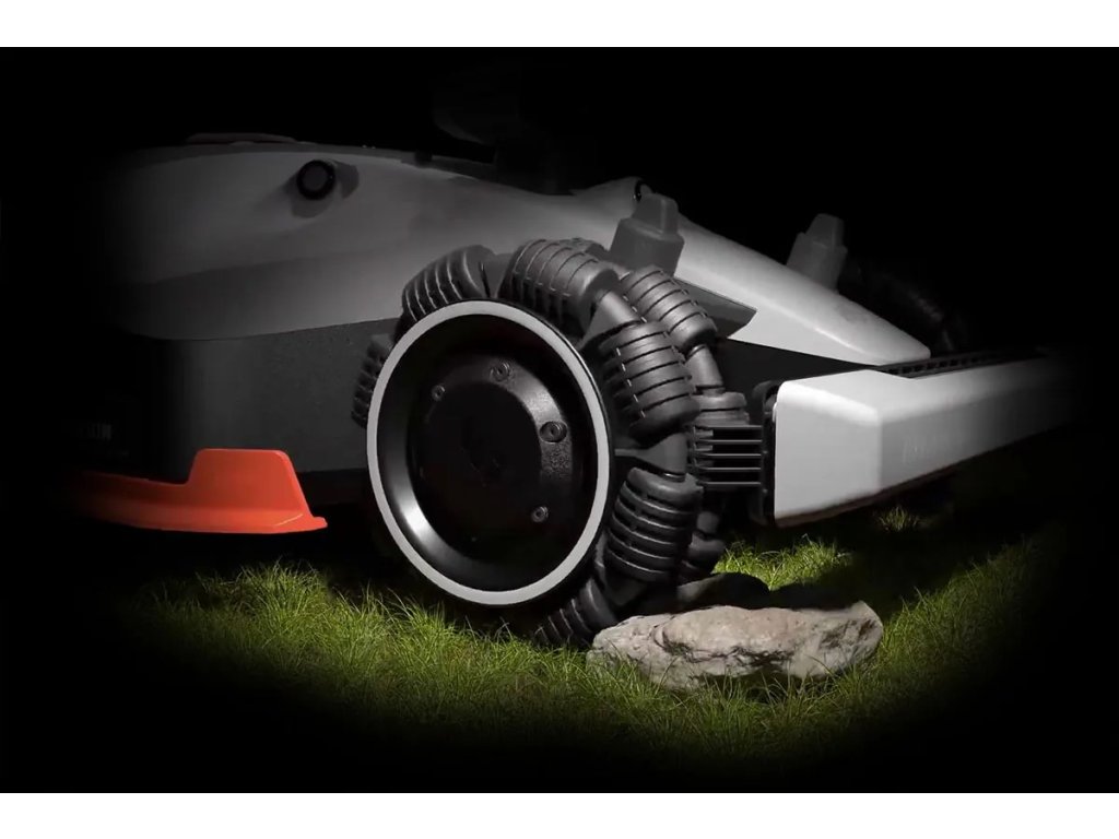 LUBA 2 AWD je vybavená všesměrovými koly, které zajišťují šetrné otáčení na místě, aniž by poškozovala trávu.