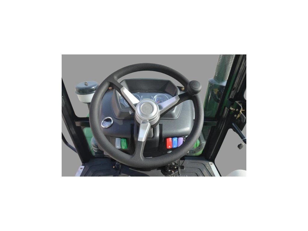 Základní verze malotraktoru je nabízena s vyhřívanou, pohodlnou kabinou, bezpečnostním rámem a vzduchovou soustavou pro brždění vleku.