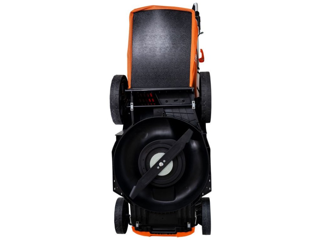 Plastové pouzdro je lehké a odolné a sběrný koš o objemu 50 litrů umožňuje delší sečení, aniž byste museli koš příliš často vyprázdňovat.