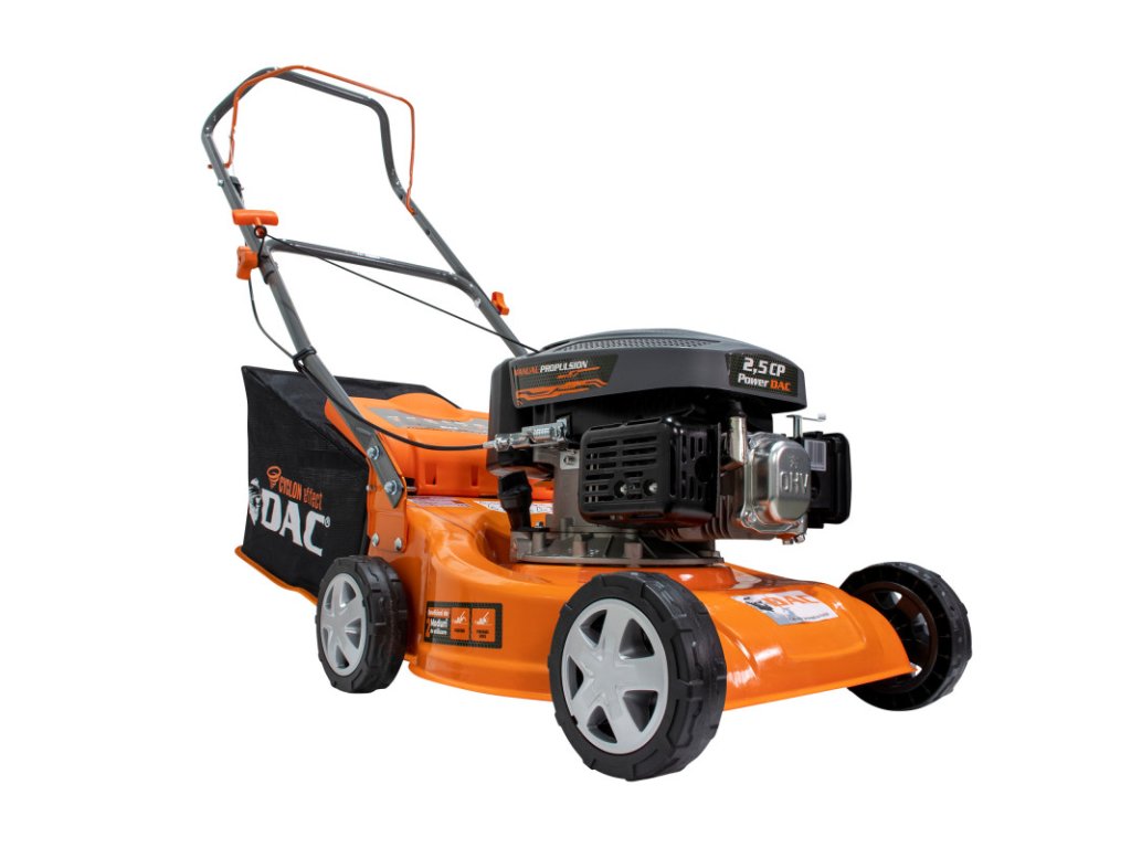 Sekačka DAC 100XL vybavená čtyřtaktním motorem o výkonu 2,5 HP má pracovní šířku 40 cm a je ideální pro sečení trávy na ploše až 1300 metrů čtverečních. Sekačka na sečení, péči a údržbu trávníku s jednoduchým a efektivním provozem, je vybavena funkcemi sběru a zadního vyhazování. Důležitým aspektem pro dosažení dokonalého trávníku je výška sečení trávy. U sekačky na trávu DAC 100XL je výška sečení mezi 25 - 55 mm, kterou lze nastavit ve 3 krocích. Podvozek je vyroben z lisované oceli, která jí dodává větší pevnost. Ergonomická rukojeť.