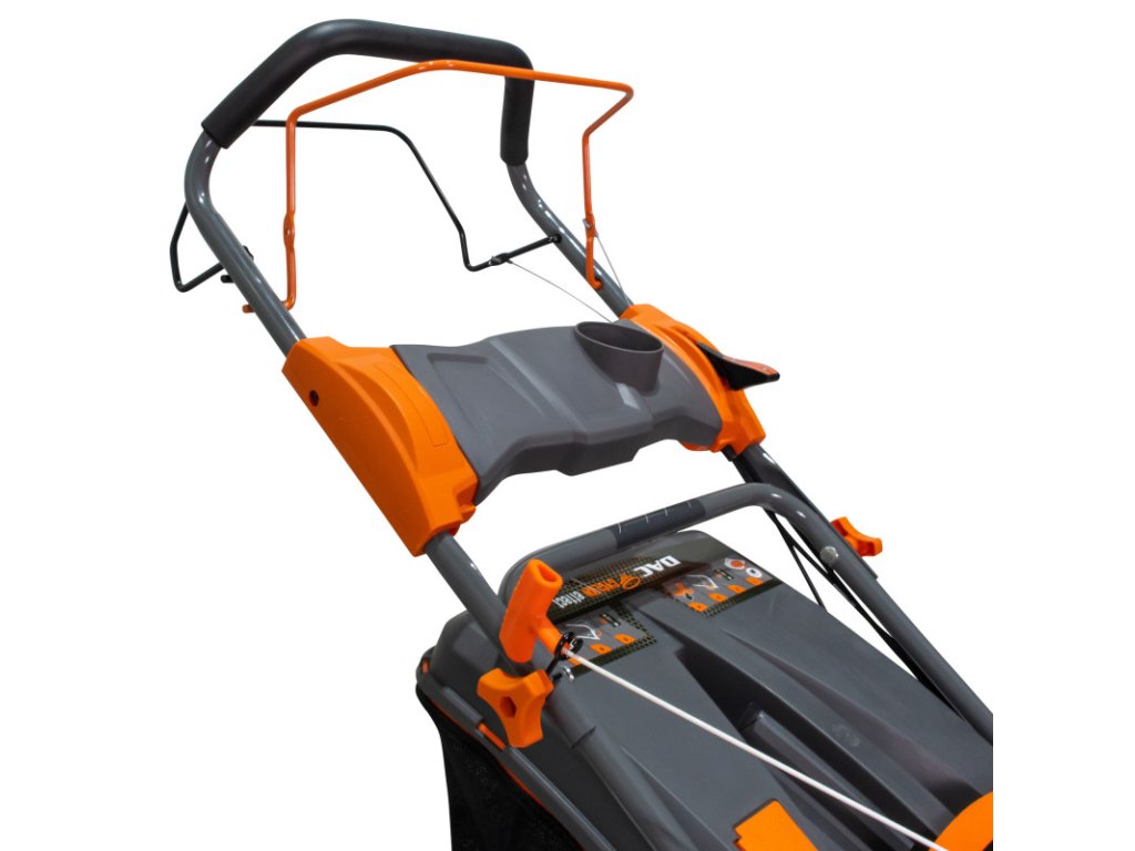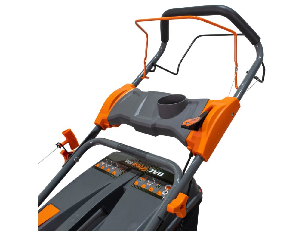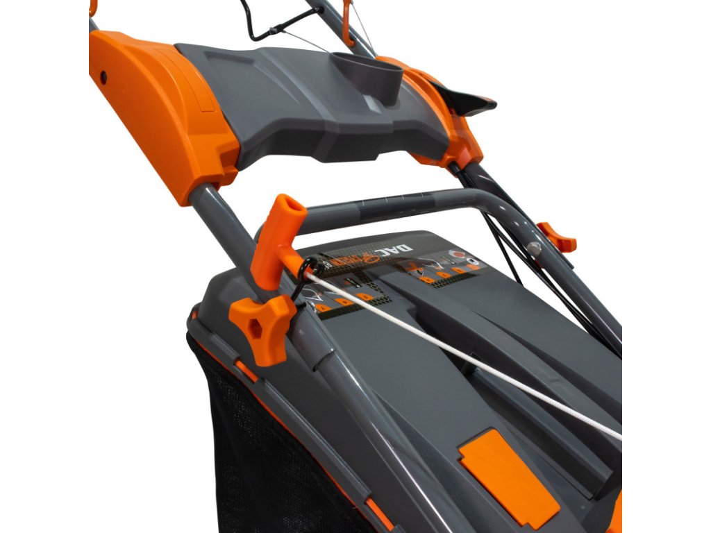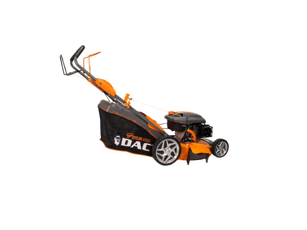 Sekačka DAC 150XL, vybavená 4-taktním motorem o výkonu 5 HP, je nejvýkonnější v řadě DAC, přičemž jako jediná má 5 funkcí: sběr, zadní výhoz, boční výhoz, mulčování a samočištění. Sekačka na trávu má pracovní šířku 50 centimetrů a je ideální pro sečení trávy na ploše až 2000 metrů čtverečních. Důležitým aspektem pro dosažení dokonalého trávníku je výška sečení trávy. U sekačky na trávu DAC 150XL je výška sečení mezi 25 - 65 mm, kterou lze nastavit v 5 krocích ovládáním bočního zařízení umístěného na základně podvozku. Velký průměr kol umožňuje sečení trávníku i na svazích. Sekačka na trávu DAC 150XL vybavená systémem vlastního pohonu nabízí pohodlí, efektivitu a zkrácenou pracovní dobu. Díky ergonomickému skládacímu systému rukojeti a sběrného sáčku se sekačka na trávu DAC 150XL snadno skladuje nebo přepravuje. Ergonomická rukojeť.