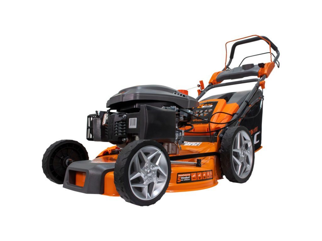 Funkce: sběr, zadní výhoz, boční výhoz, mulčování, samočištění