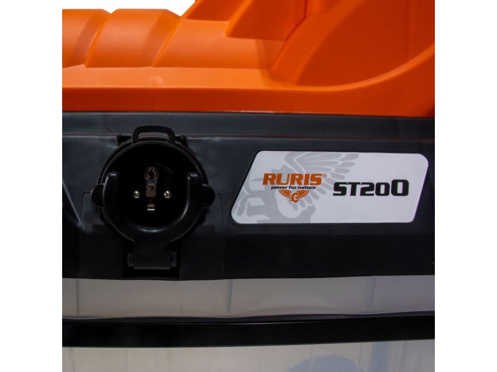 Drtič na větve a zelený zahradní odpad s elektromotorem 2800 W a odolnými noži, s maximálním průměrem řezu 35 mm. Drtič je vybaven ochranou proti přetížení, která zabraňuje poškození motoru. Tento model disponuje také funkcí Control Look, která umožňuje nastavení pracovní tloušťky pouhým otočením nastavovacího knoflíku. RURIS ST200 se dodává se sběrnou nádobou vybavenou bezpečnostním uzávěrem, který umožňuje spuštění drtiče až po správném uzavření nádoby. Nádoba má objem 45 l a je vyrobena z odolného plastu. Tlačítka ON/OFF jsou pro bezpečnost uživatele vybavena ochranou, která zabraňuje náhodnému zapnutí zařízení. Drtič se velmi snadno přepravuje díky stabilnímu kovovému rámu a dvěma transportním kolečkům. Mezi výhody elektrického drtiče patří nízká hlučnost a nulové emise. Po zpracování zahradního odpadu můžete rostlinné zbytky ze zahrady použít jako rostlinné hnojivo.