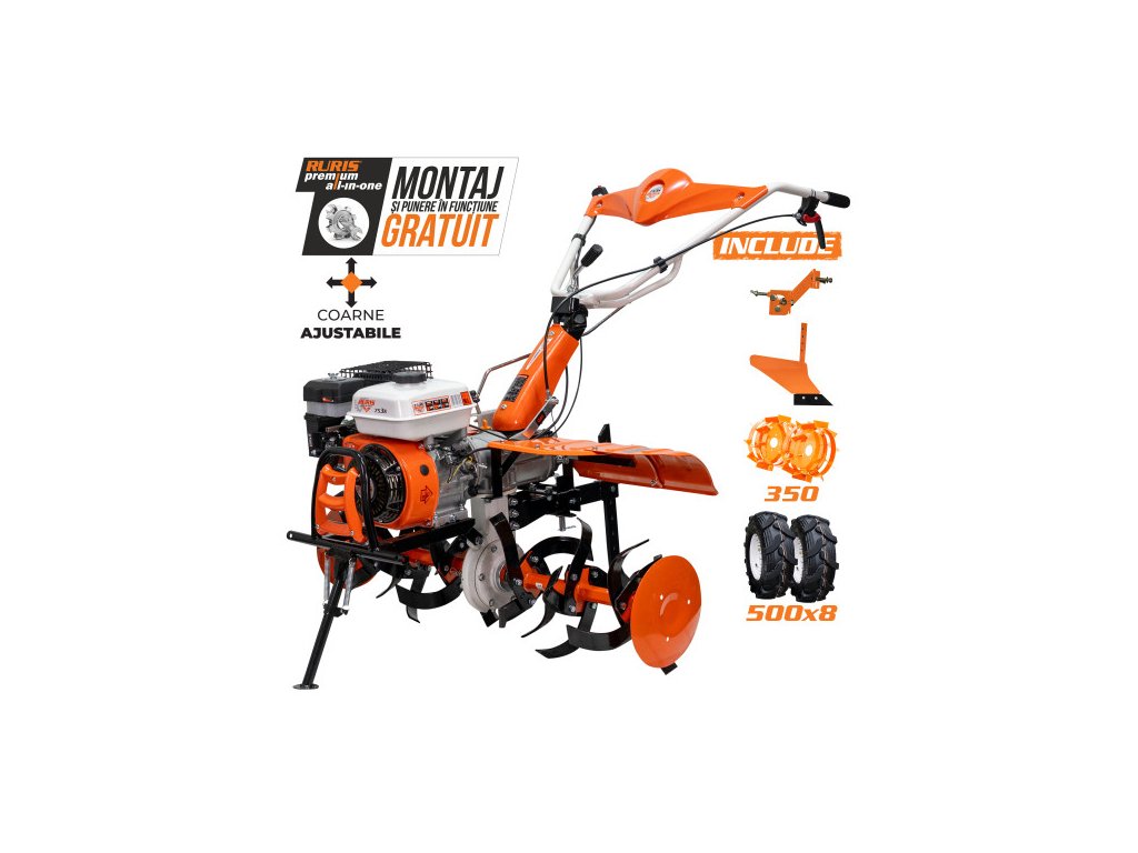 Profesionální motorový kultivátor 753K je speciálně zkonstruován a určen ke zpracování lehkých i tvrdých půd, u kterých je zapotřebí správné vyvážení hmotnosti a rychlost pohybu ve vztahu k připojenému příslušenství nebo při použití kultivačních motyček. Motorový kultivátor je vybaven motorem 7,5 HP General Engine a je určen pro zemědělské práce na zahradách a polích. Konstrukce převodovky a těžiště převodovky - reduktoru byly speciálně přizpůsobeny tak, aby dělaly zemědělskou práci podle očekávání uživatele. Převodovka nabízí rychlosti pojezdu 3+1. Kultivátor je vybaven 4-taktním motorem, poháněným benzínem a je ideální pro práci na velkých plochách s pracovní účinností na plochy 600 – 1000 m2/h. Pracovní šířka nožů je nastavitelná a lze ji nastavit od 990 mm do 1010 mm. Kultivátor dokáže kopat a drtit půdu až do hloubky 290 mm pro pěstování jakéhokoli druhu plodin. Skříň převodovky profesionálního kultivátoru RURIS 753K nevyžaduje speciální údržbu, vyrobena z litiny, odolná vůči nárazům a mechanickému opotřebení. Díky opláštění získává kultivátor extra váhu, která mu umožňuje proniknout víc do země, také zvýšenou stabilitu při kultivování. S kultivačními noži z kvalitní oceli dokáže zpracovat i ty nejtěžší půdy. RURIS 753K umožňuje připojit všechny typy přídavných zařízení pro zemědělské práce. Manévrovatelnost je dána konstrukcí naváděcího a ovládacího systému, ovládací prvky jsou umístěny ve snadném dosahu uživatele. Profesionální motorový kultivátor i přes hmotnost 84 kg lze snadno ovládat díky vzhůru nastavitelným kovovým madlům a gumovým rukojetím určeným k tlumení vibrací generovaných motorem. Příslušenství, které lze namontovat na RURIS 753K: pryžová kola, kovová kola, brány, pluh, kultivátor, protizávaží a přívěs, jehož zatížení může dosáhnout až 600 - 700 kg.
