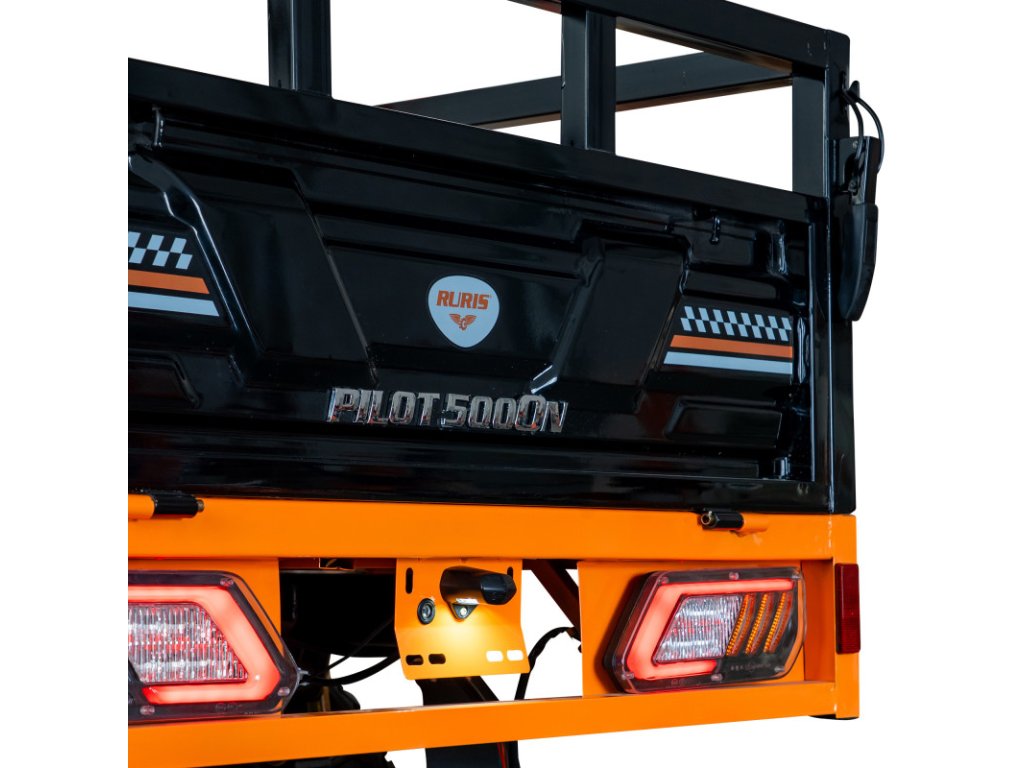 RURIS Pilot 5000N je vybaven elektromotorem o výkonu 4900 W, který zajišťuje plynulý chod i při vysokém zatížení nebo v náročném terénu – bez ztráty výkonu. Tento motor poskytuje dostatečný točivý moment pro pohodlný provoz i při plném zatížení objemným materiálem nebo nářadím, takže je ideální pro zemědělské práce, stavebnictví nebo údržbu krajiny.