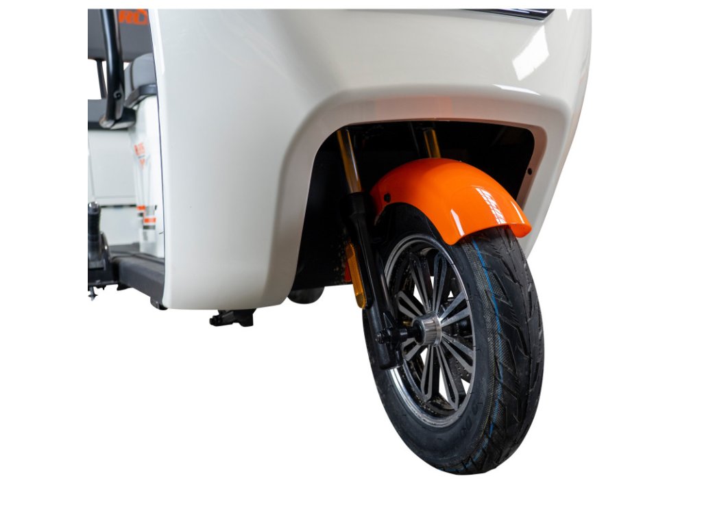 Elektrická tříkolka RURIS Pilot 3070A je vybavena kombinovaným brzdovým systémem, který zahrnuje přední kotoučovou brzdu a zadní bubnovou brzdu – tato konfigurace nabízí vynikající rovnováhu mezi bezpečností, účinností a odolností.