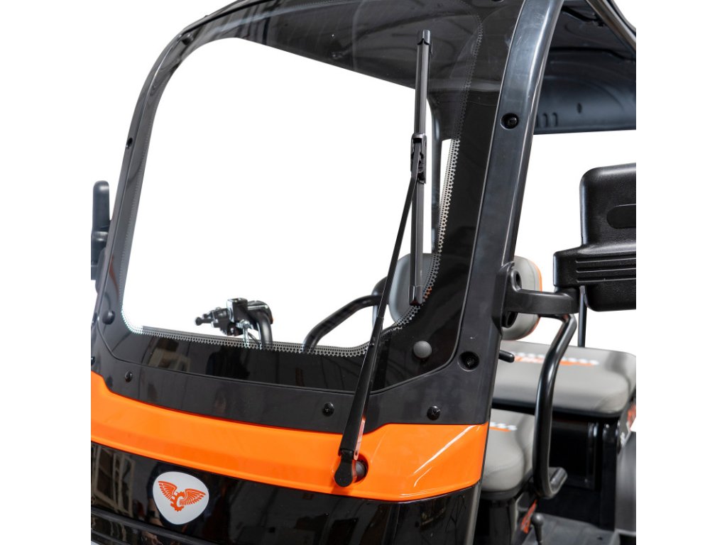 Ke komfortu přispívá plastová střecha, která poskytuje ochranu spolujezdce i řidiče během jízdy.