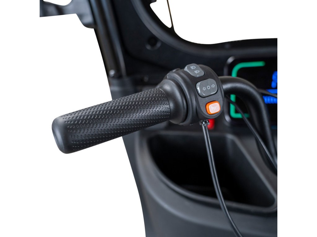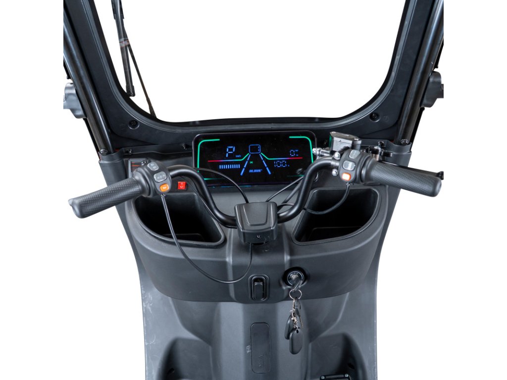 Elektrická tříkolka je vybavena extra velkým LCD displejem, který značně zlepšuje uživatelský zážitek. Velký displej umožňuje jasné a rychlé čtení všech důležitých informací – rychlost, stav baterie, počet najetých kilometrů a další funkce – a to i za jasného osvětlení, což přispívá k bezpečnějšímu a intuitivnějšímu používání.