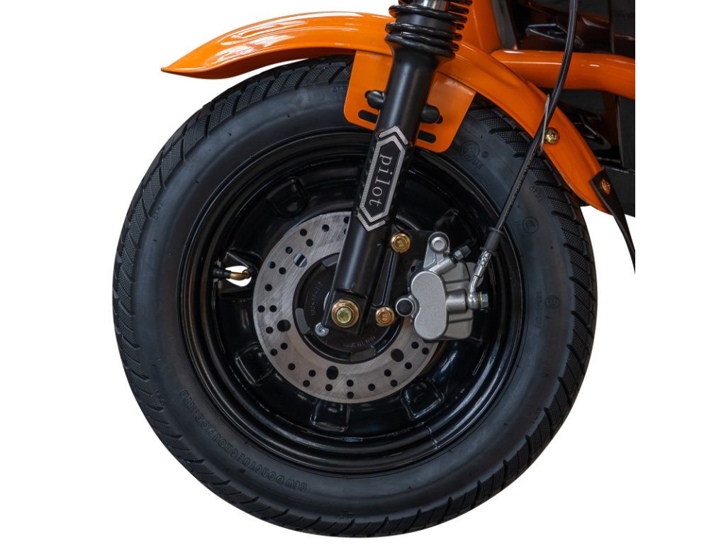 Tříkolka RURIS Pilot 3120 je vybavena kombinovaným brzdovým systémem: přední kotoučovou brzdou a zadní bubnovou brzdou – tato kombinace zajišťuje vynikající rovnováhu mezi bezpečností, výkonem a odolností.