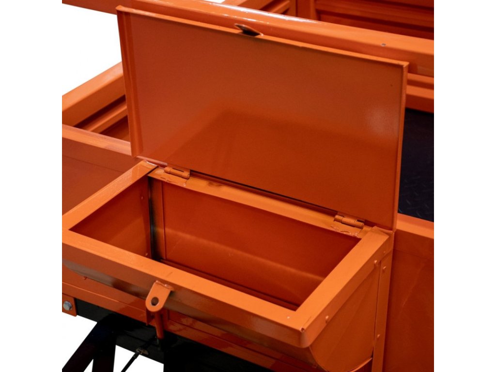 Přívěs ke kultivátoru pro přepravu stavebního a sadbového materiálu. Pevný odolný podvozek pro nerovný terén, ruční i nožní brzda. Přívěs je snadno ovladatelný díky ručnímu vyklápění. Přívěs není schválen a vybaven pro jízdu po veřejných komunikacích nebo na svahu / rampě se sklonem větším než 10 stupňů. Přívěs má uzamykatelný prostor pod sedadlem a pro lepší zdolávání nerovností má lamelová pera. Vhodný ke všem druhům kultivátorů. Včetně sady nářadí, upevňovacích háků a skládacího zvedáku.