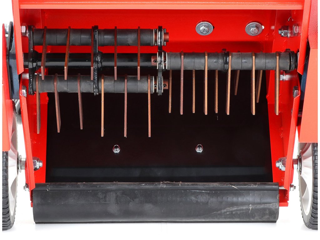 Profesionální flexi nože ideálně a šetrně provzdušní hustý porost trávníku. Výšku provzdušňování lze nastavit pohodlně samostatnou seřizovací pákou.