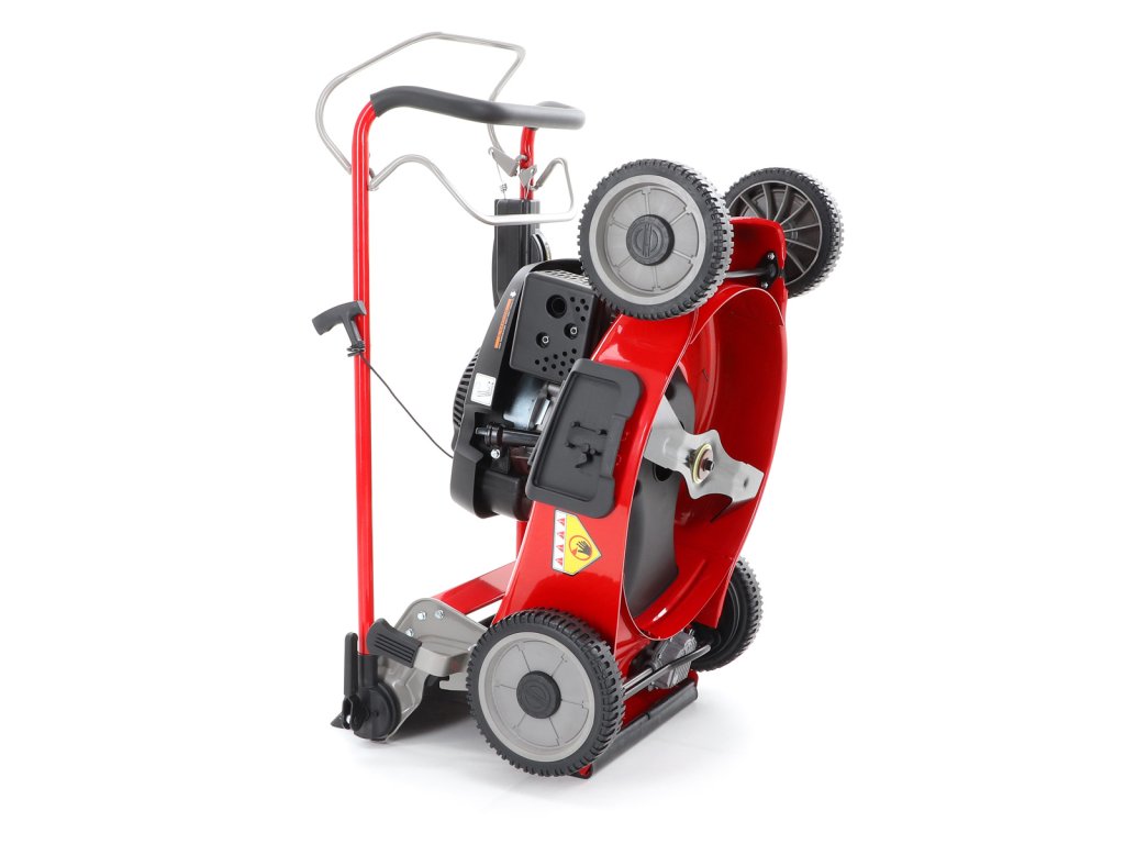 Novinkou sekačky je funkce tzv. "CHYTRÉ ŘEŠENÍ", sekačku lze pro ekonomické uskladnění, snadné čištění, servisování otočit a postavit na zadní speciální patky šasí, tímto se snadno dostanete na spodní část žacího ústrojí, uložení náprav a převodovku. Ergonomicky upravená madla se dají variabilně nastavit do jakékoli výšky za pomocí profesionálních masivních celokovových rychloupínáků. Novinkou letošní sezóny je speciální metalický komaxitový nástřik SMOOTH HARDNESS (3 vrstvy nástřiku), který výrazně umocňuje luxusní vzhled a eleganci.