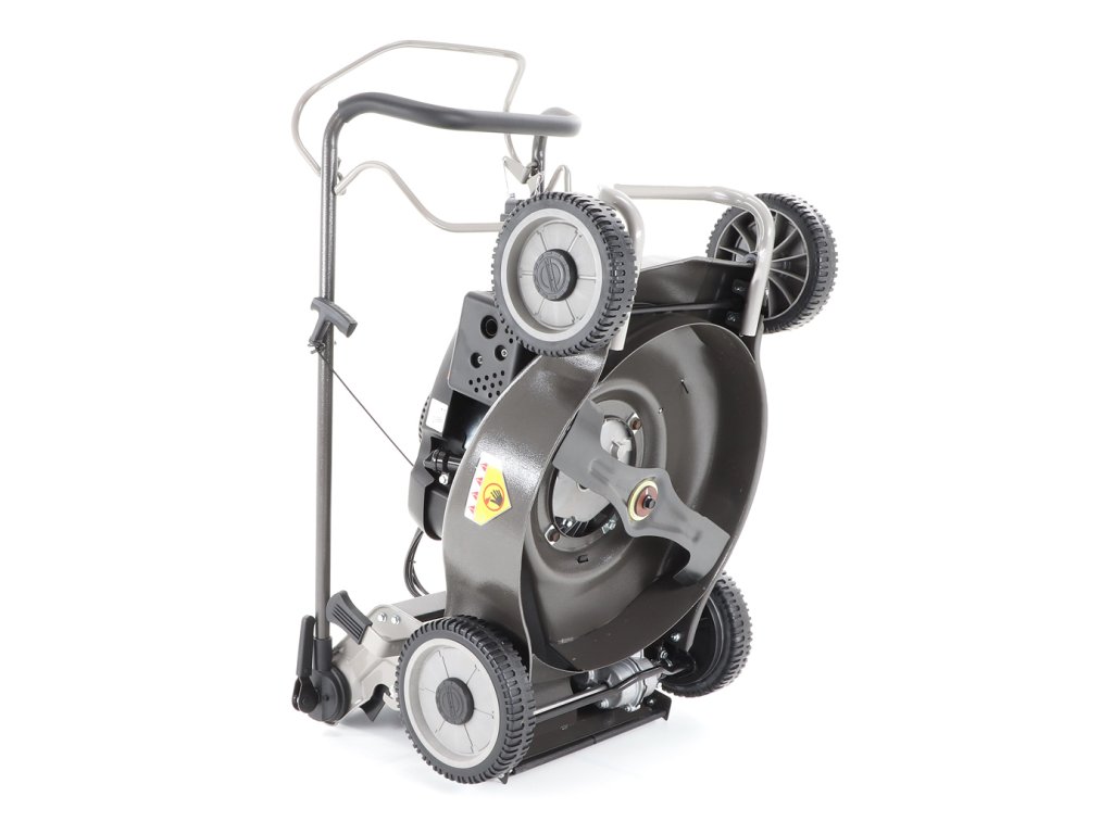 Třecí spojka nože: ANO Zadní výhoz: ANO v profesionální nástavbě Ovládací panel na rukojeti: ANO Ergonomicky měkčená rukojeť: ANO Kovové rychloupínáky madla: ANO