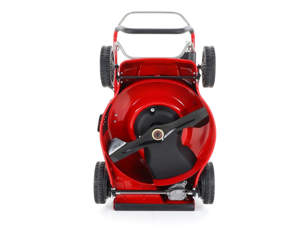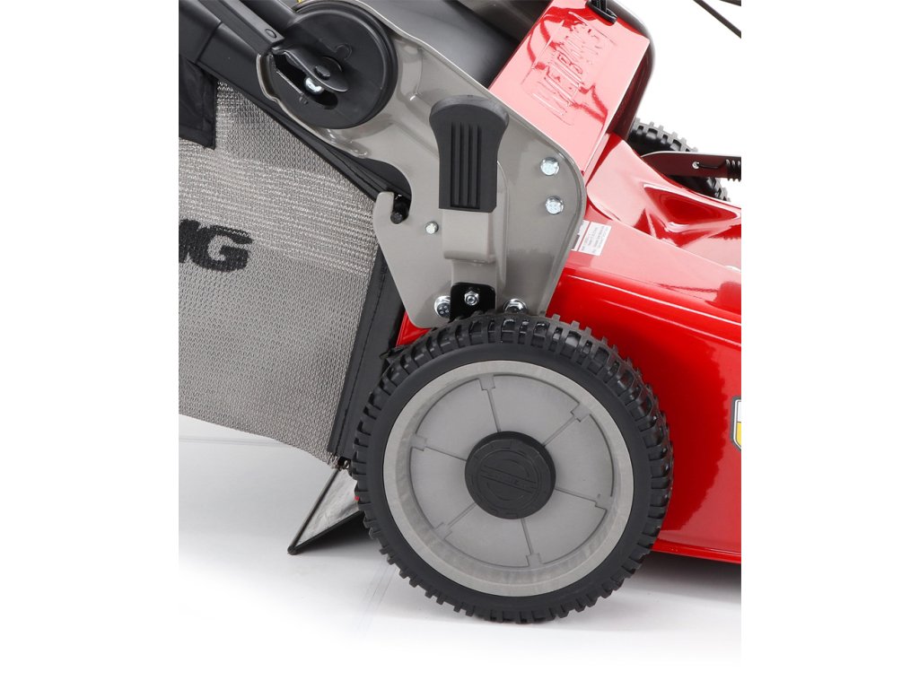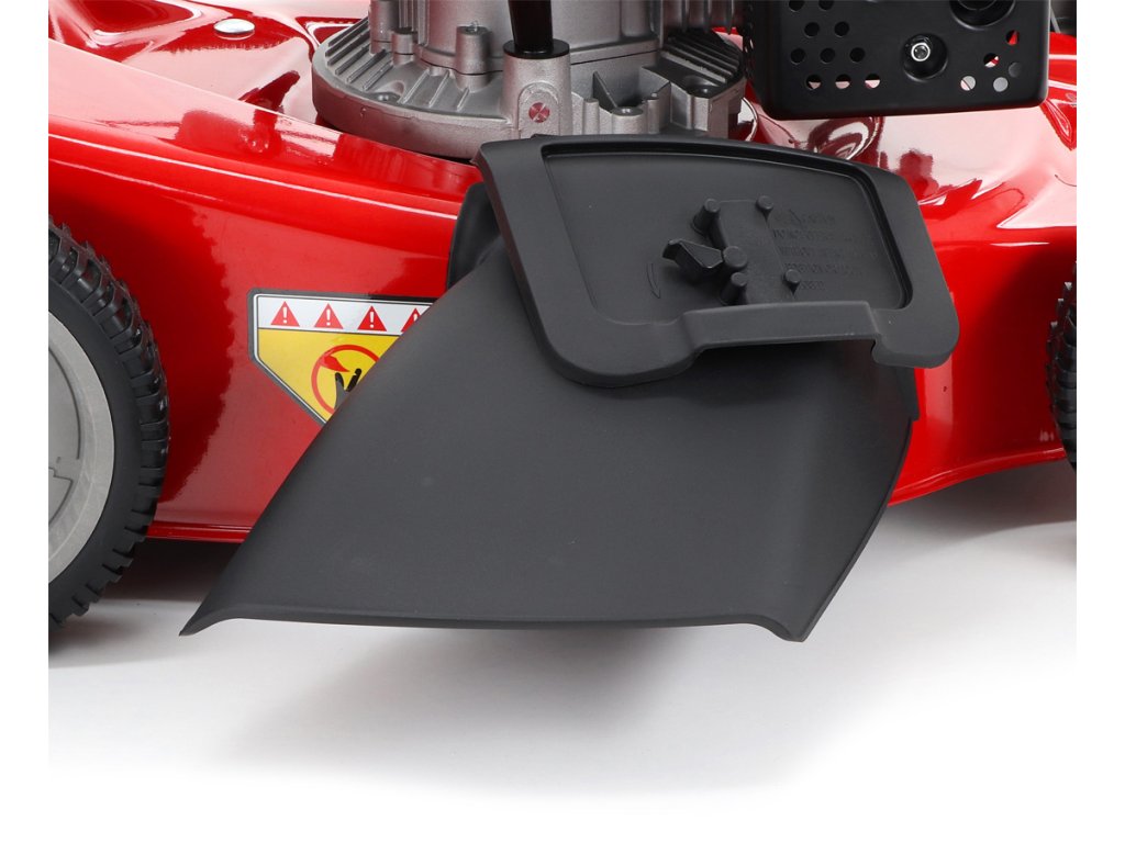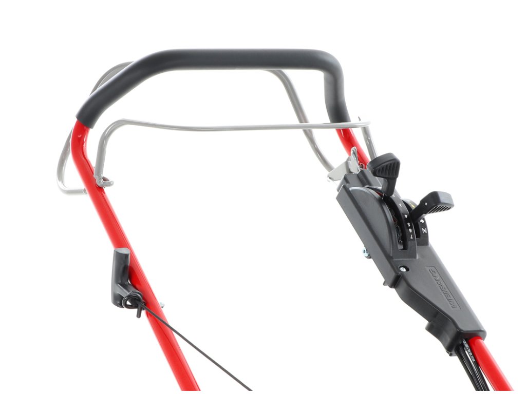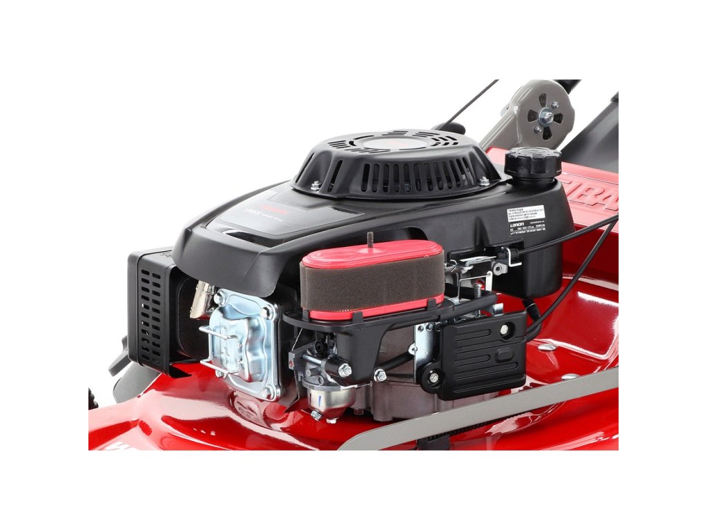 zadním deflektorem a má variabilní pojezd daný 3 rychlostní variátorovou převodovkou. Výhoda hodně silného motoru o výkonu 7 HP a nože s velkými lopatami Vám perfektně sebere i přerostlou mokrou trávu. Pogumovaná sendvičová kola jsou uložena v oboustranných kuličkových ložiscích,