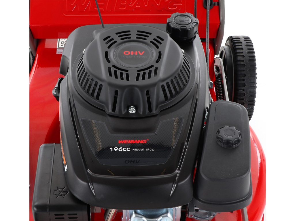 kvalitního pomocníka s bojem proti zelenému živlu. Dalším velkým unikátem je motor, který patří mezi to nejlepší a nejsilnější co WEIBANG v této třídě nabízí. Jedná se o profeisonální hodně silný motor rozvodu OHV o výkonu 7 HP a vysokým kroutícím momentem 10,5 Nm - 196 ccm.