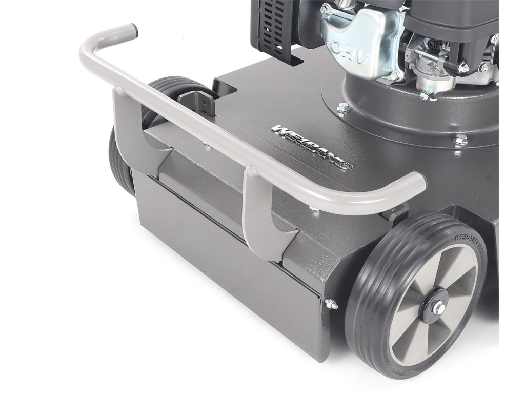 Sekačka WEIBANG WB BC 537 SCV je určena na středně velké až velké travnaté plochy. Sekačka je především určena pro domácí i profesionální mulčování s pojezdem. Sekačka WEIBANG WB BC 537 SCV vyniká speciálně tvarovaným pevným a masivním ocelovým šasim a je také vybavena 3 rychlostní převodovkou. Výhoda hodně silného motoru 196 ccm a speciálnlně tvarovaného silného mulčovacího X nože Vám perfektně poseká nízkou i středně vysokou trávu. Pogumovaná sendvičová kola jsou uložena v oboustranných kuličkových ložiscích, centrální nastavení výšky sečení je u této značky samozřejmostí. Velkým nadstandardem u této sekačky je použita speciální PROFI ochrana hřídele motoru, která je schopna zabránit poškození celého motoru.
