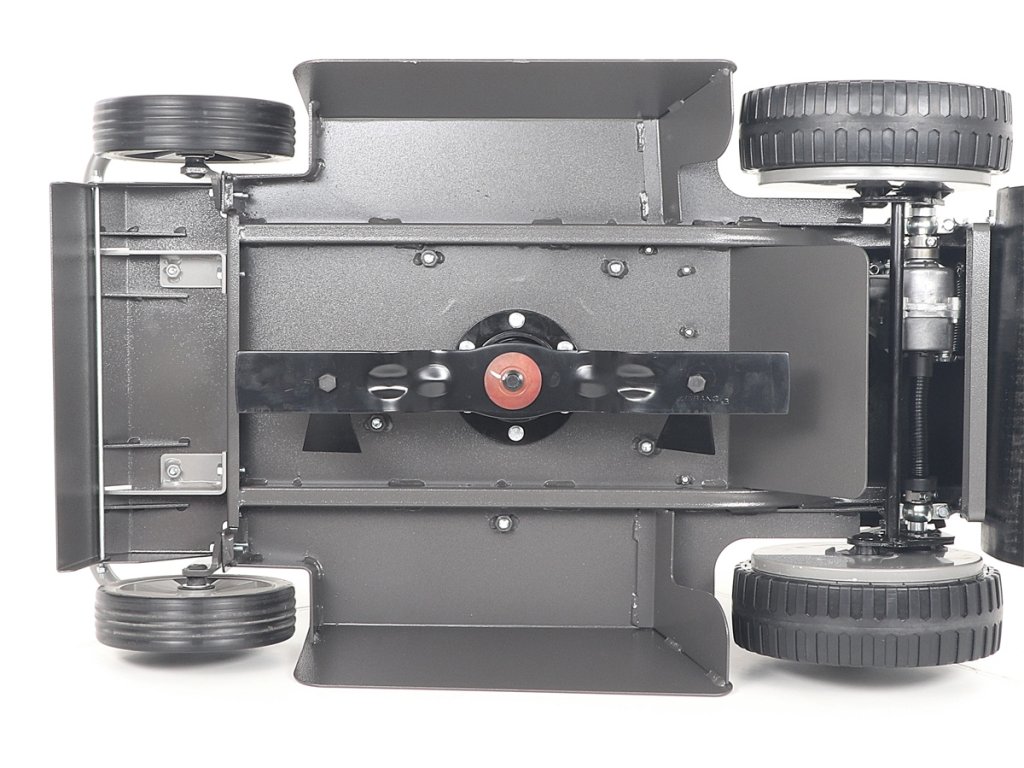 Tato funkce může eliminovat škody na sekačce způsobené nárazem nože do překážky. Dále je tato sekačka vybavena pevnými zadními koly a sklopnou rukojetí pro snadné uskladnění a přepravu. Dalším velkým unikátem je motor, který patří mezi to nejlepší